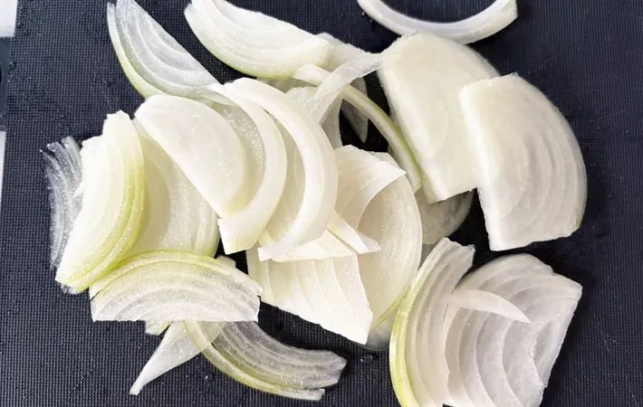 タマネギは薄くスライスしておきましょう。