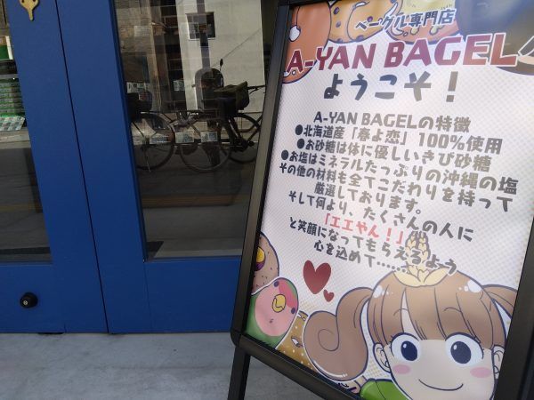 店名の「A-YAN BAGEL(エーヤンベーグル)」は、たくさんの人に「エエやん!」と笑顔で言ってもらえるようにと命名したそう。エエやん!