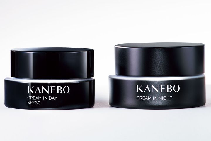 左:紫外線や乾燥ダメージから肌を守り柔らかなツヤ肌へと導く朝クリーム。表情筋の動きにピタリと寄り添うオールデイシールド塗膜技術により夕方まで潤いをキープし、メイク崩れを防ぎます。クリーム イン デイII SPF30・PA+++[医薬部外品]40g¥9,350 右:水分蒸発量の多い夜の肌に密着するオーバーナイトシールド塗膜技術により、睡眠中の肌を乾燥から守ります。クリーム イン ナイトII [医薬部外品]50g¥13,750(.)