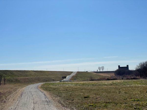 土手から下りて行った先に駐車場があります。 下りた先から土手方面を見るとこんな感じになっています。 初見だと入り方が分かりにくいかもしれませんので、参考になさってください。