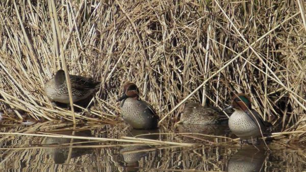 こちらはコガモ。カモの中でも小柄でかわいらしいサイズ。 丸っとしたフォルムと、オスは緑と茶色のツートンカラーのお顔で、中々オシャレです。
