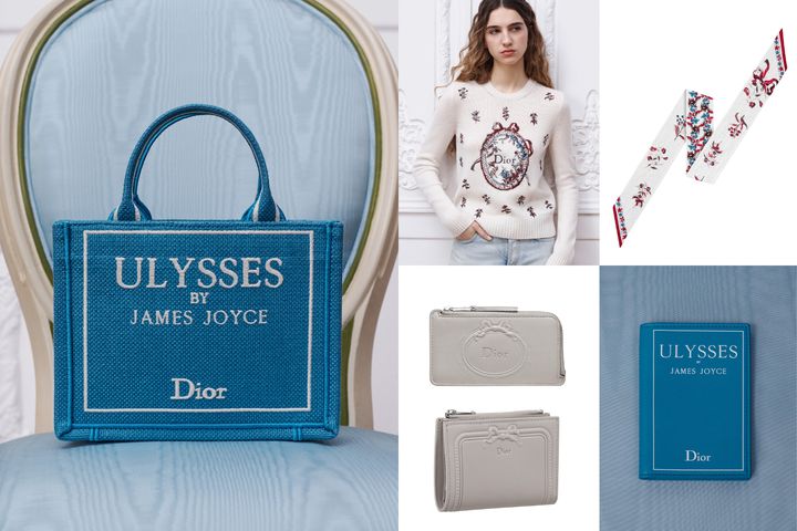 なかでも注目は、アイルランド出身の作家ジェイムズ・ジョイスの小説『ユリシーズ』初版の表紙がデザインに落とし込まれたコレクション。メゾンのアイコンバッグ“ディオール ブックトート”をはじめ、2つ折りカードホルダーやマグネットカードホルダーなど、鮮やかなブルーとホワイトの刺繍が織りなすコントラストの美しいピースが揃います。名作文芸作品にオマージュを捧げた、持ち運べるアートピースのような逸品です。