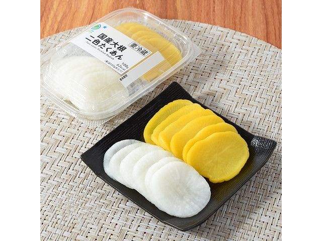 国産大根を使用した、パリパリとした食感の良い二色のたくあんです。