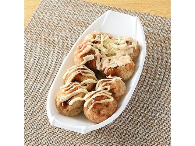 だし感のあるとろーり食感のたこ焼きに、明太チーズと定番のソースマヨネーズをトッピングした2種の味わいを楽しめる商品です。