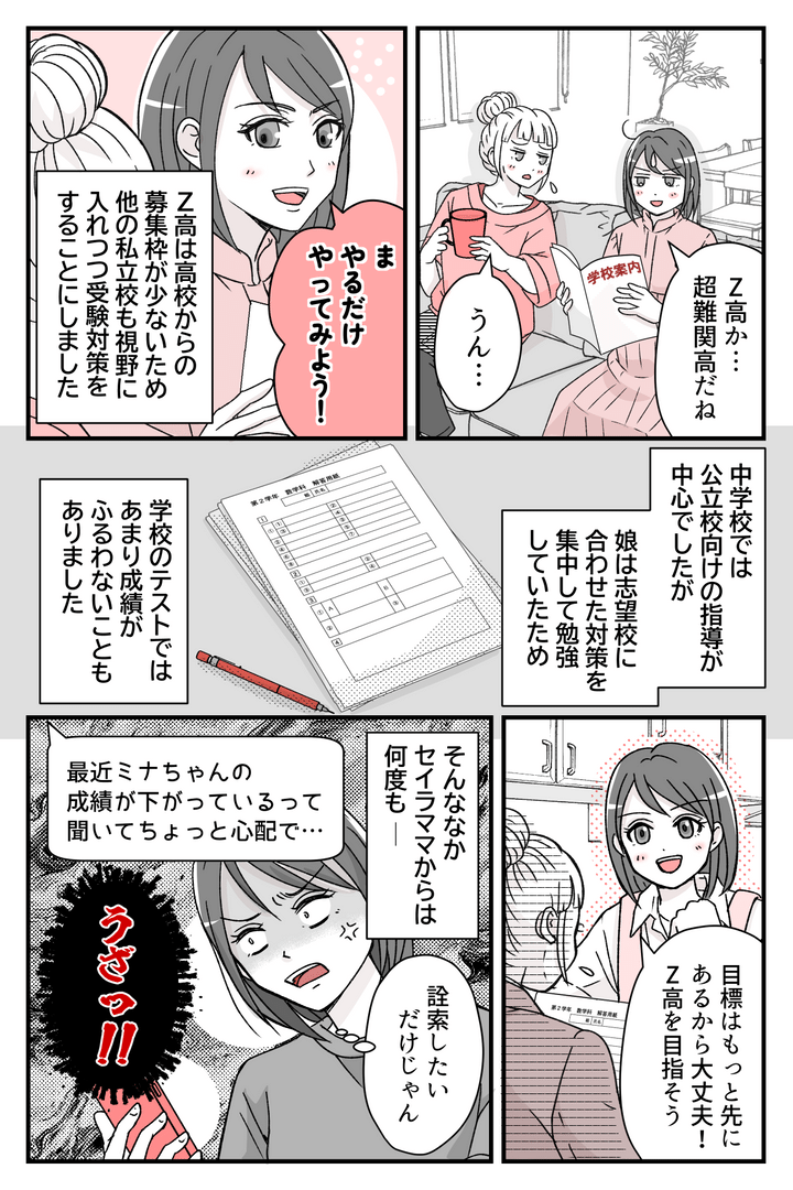 3. <子の受験でマウント!?>「心配ご無用!」勘違いママ友にビシッ【まんが:ミナママの気持ち】
