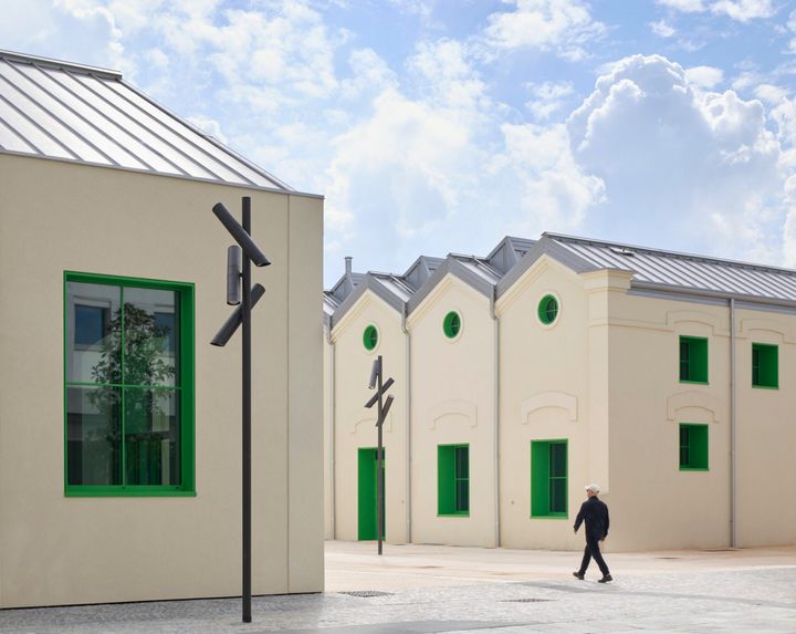 ミラノの街を彩る伝統建築に着想を得たSOMは、公共緑地が点在する敷地内に、選手が生活する6棟の建物を新築。さらに、2棟の歴史的建造物をリノベーションした。