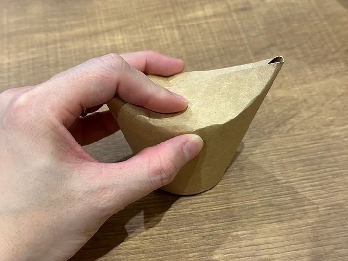 『バッグ風ラッピング』の本体となる紙コップは、蓋をするように上の部分を内側に折ってください。