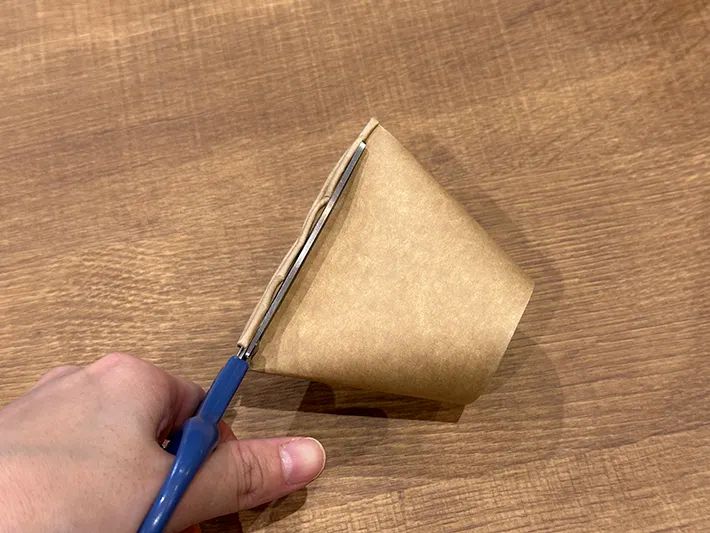 カットした飲み口部分は後ほど使うので、なるべく紙コップの縁ギリギリを切るようにしましょう。