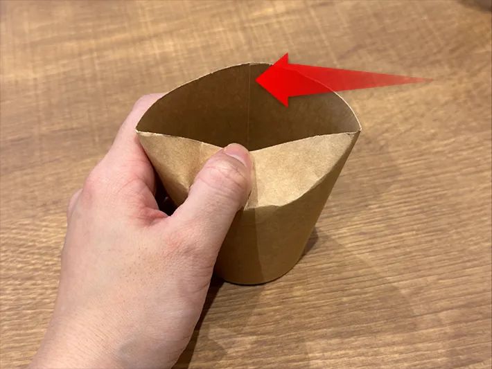 この時、紙コップの線が表面の真後ろにくるように折ると、仕上がりがよりきれいになるでしょう。