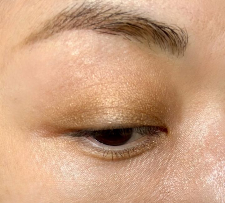 「“Monochromatic Mirage”というテーマの春の限定アイシャドウです。繊細なパール感で、しっとり溶け込むような伸び感があり、まぶたにしっかりとフィット。エフォートレスで軽やかなキャメルは、ファッションを選びません。セピアブラウンを少し目のキワに入れるだけで簡単に立体感が出せます。