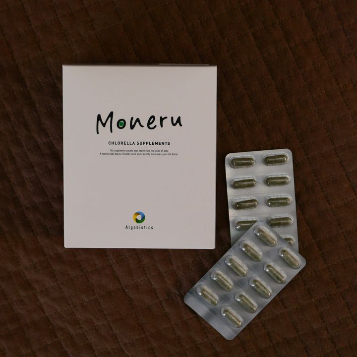 最近欠かせないのは、クロレラのサプリメント「Moneru」。なんとなく眠りが浅いと感じる夜、就寝前にとり入れるのがルーティン。ごちゃごちゃした頭の中や、溜まったストレスをすっきりと整理してくれるような感覚があり、自分の中を拭き掃除したような、クリーンなコンディションへ導いてくれます。