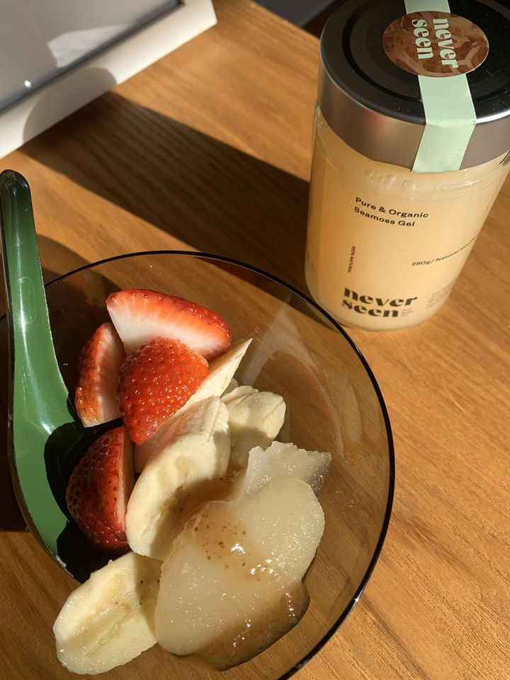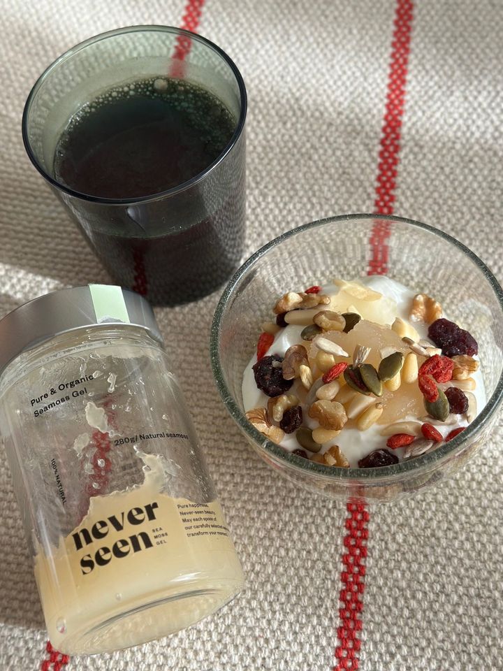 最近ハマっているのが、「ネバーシーン」のシーモスジェル。ヘイリー・ビーバーなどの海外セレブがスムージーに入れているスーパーフードとして注目していたところ、昨年日本での取り扱いを発見! 朝食のヨーグルトにトッピングしているのですが、ジュレのようなテクスチャーで腹持ちもよく、一品で満腹感あり。海藻らしい風味も、ハチミツを混ぜることで美味しくいただけるのでおススメ! 藻活はこれからもずっと大切にしていきたいウェルネスルーティンのひとつです。