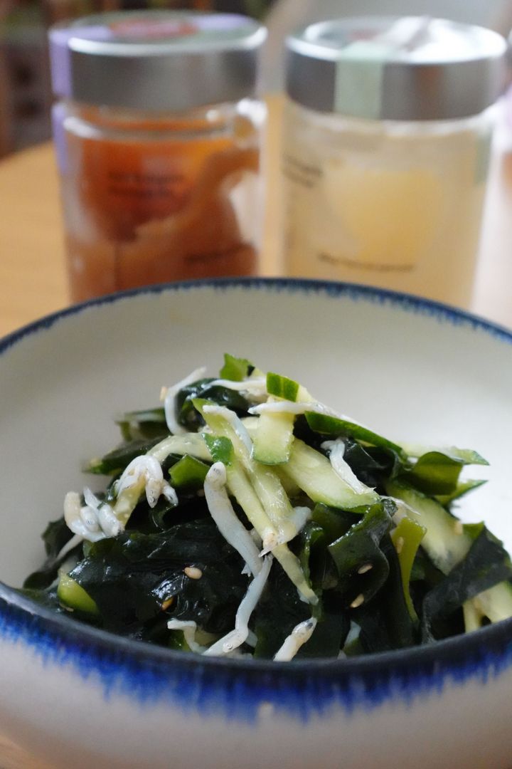 まめ類、ごま(種実類)、わかめ(海藻類)、やさい、さかな(魚介類)、しいたけ(きのこ類)、いも類の7つの食材の頭文字を取った、日本古来の食養生「まごわやさしい」を知ってから、合言葉のように意識して積極的にとるようにしています。もずく、めかぶ、乾燥わかめ、海苔などで手軽に摂取しつつ、足りない分をサプリなどの製品で補っています。