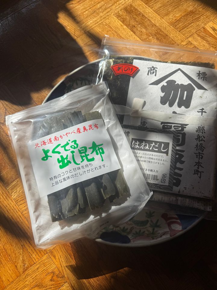 「戸田理平商店」の無酸処理の乾燥海苔も欠かせません。少し火で炙ってから、パルミジャーノやオリーブオイルと合わせてサラダにトッピングしたり、スープの具にしたり。いつものレシピが驚くほど風味豊かになります。また、渡仏するときは「ボルディエ」の海藻バターも必ず入手。海藻系はいつものレシピを風味アップさせるためにも欠かせない存在だと思います。