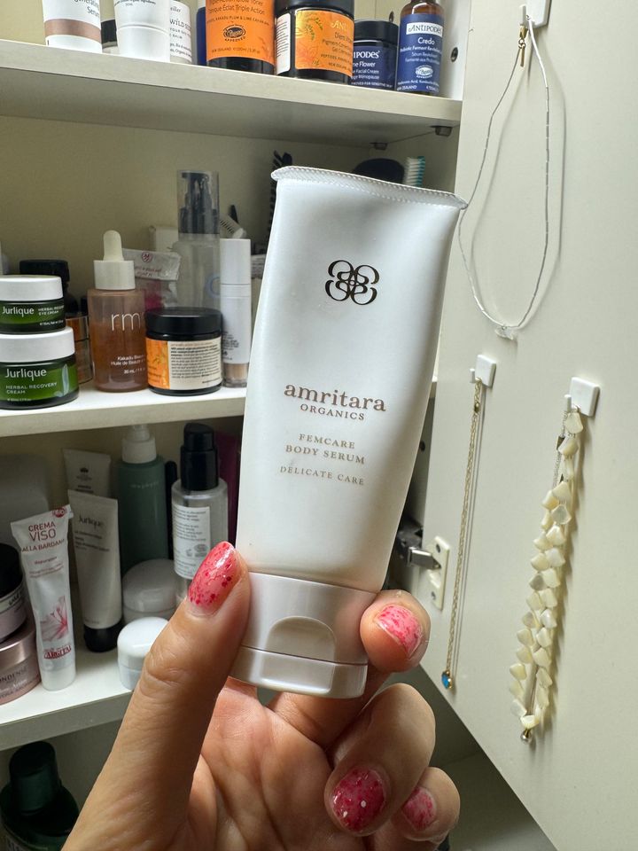 最近は、インナーケアだけでなく「アムリターラ」の“フェムケア ボディ セラム”も愛用中。日本の植物や海藻を配合したみずみずしいジェルで、デリケートゾーンをしっとり保湿。内側・外側から藻の力をとり入れています。