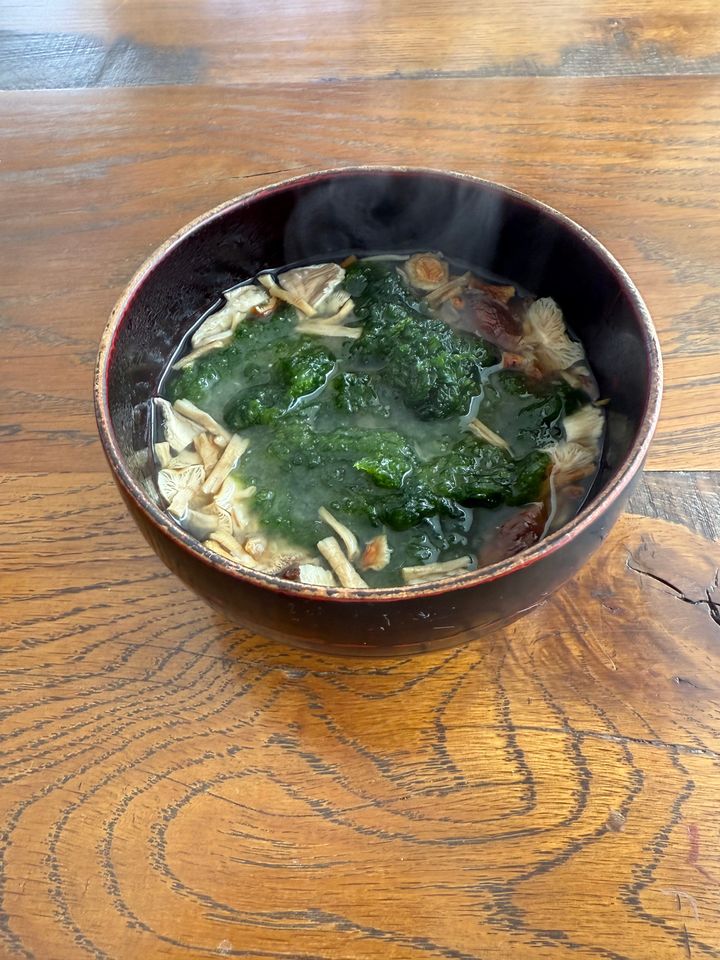 日々の食事では、ミネラル補給と体内環境のサポートを意識して、あおさやワカメ、もずく、とろろ昆布などを積極的にとり入れています。定番は、キノコとあおさをたっぷり入れたお味噌汁。仕上げに少量の胡麻油と白ごまを振るだけで、風味がぐっとアップして満足感のある一杯になります。
