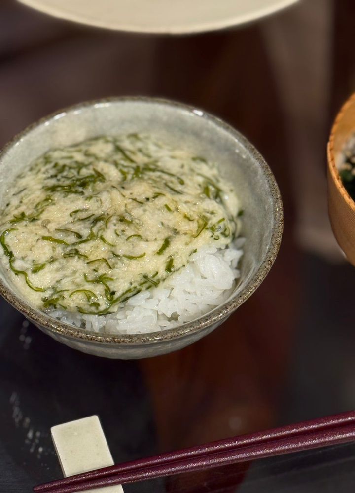 とろろ、めかぶ、醤油を混ぜたなんとも地味なご飯ですが、子供の頃からの定番メニューで、私にとって美容の源。藻活を意識することで、毎日のリズムが健やかに整い、同時に軽やかなポジティブマインドにもつながっている気がします。