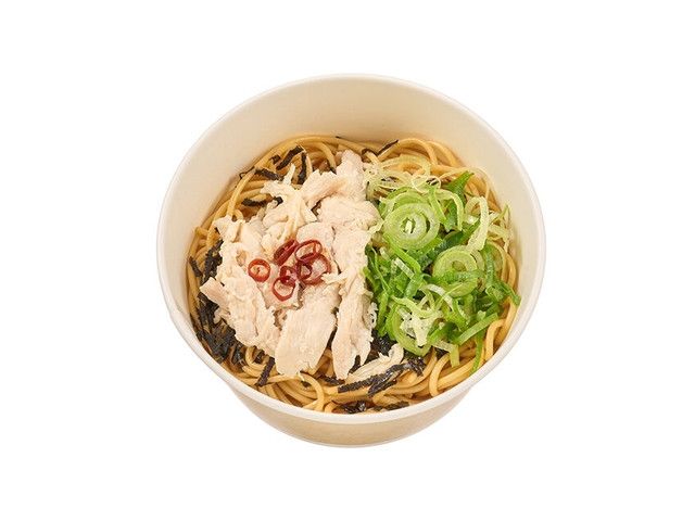 和風ソ―スで炒めた麺に蒸し鶏・青ねぎ・きざみのりをトッピングしました。 取り扱い店舗 全エリア