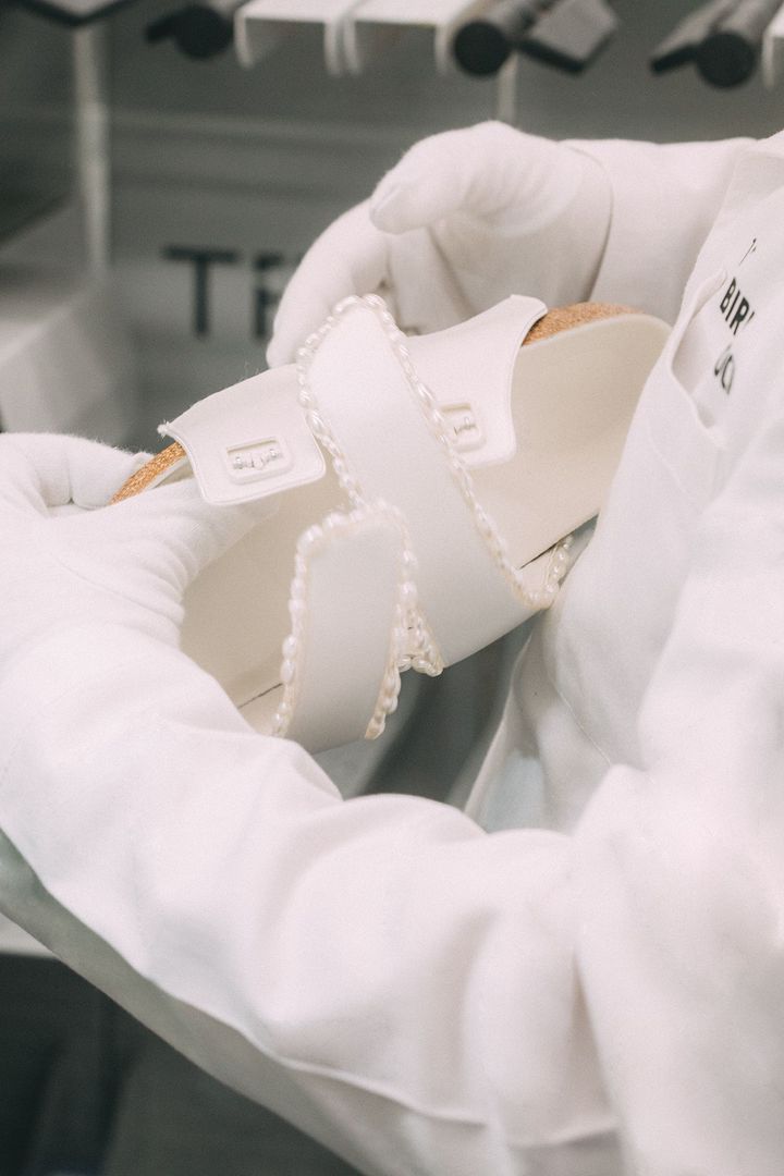 コアとなるアイデアは、それぞれのスタイルをまるでジュエリーのように捉え、ビルケンシュトックのクラシックなシルエットの上に繊細にあしらうことでした。パールの大きさや配置については何度も試行錯誤を重ね、最終的にはシューズのシームに美しく溶け込む形で組み込んでいます。