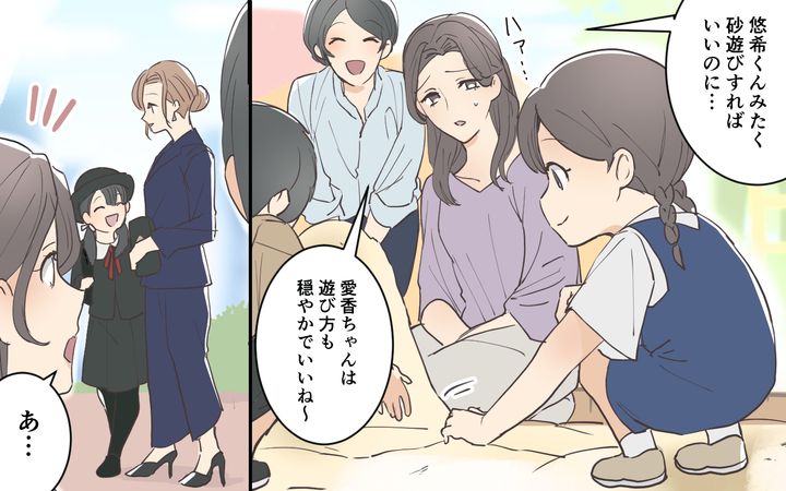 これまでは一緒に砂遊びをしていたママ友。お受験スイッチが入ったことにより言動が変わっていってしまうのです…。