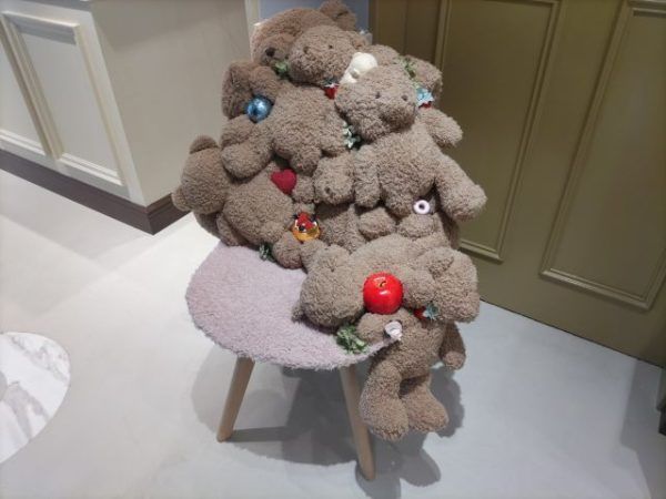 思わずカメラを向けてしまう、クマモチーフのシャンデリアやチェア、大きなぬいぐるみまで。