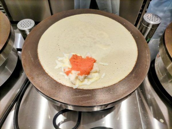 お食事系クレープは、こちら。ソラリアプラザ限定の「博多めんたいことチーズのクレープ」(¥1,290税込)。