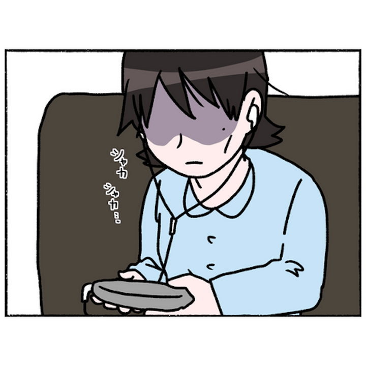 …で、談話室の奥のソファでポツンと1人、音楽を聴いていた若い女性を見た母。「この子も話しかけたら救えるかもしれない」と、母は考えてたのかしれませんね。母いわく無意識に話しかけてたみたいですが…。ちなみに女性が聴いているのはポータブルCDプレイヤーです。これ、当時(この物語は2003年秋頃です)持っている人が多かったのではないでしょうか。