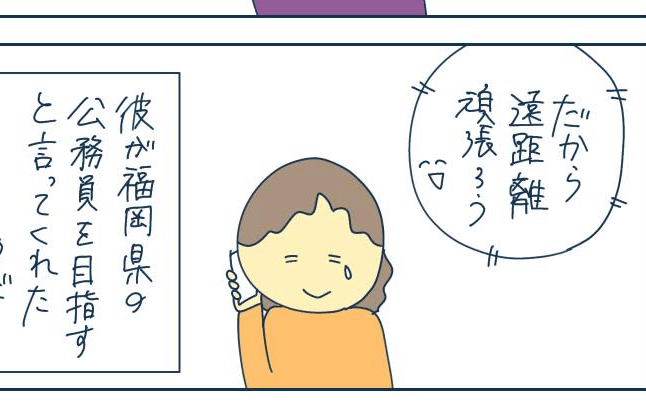 トマトさんはバイト先の年下後輩であるいっちょさんと仲良くなり、告白されて交際がスタートします。初めての彼氏に喜び、親友のオクラっちさんに報告をします。電話で彼氏のことを語り合う中、いっちょさんの学歴や進路の話題に。やがて就職先が福岡と判明し、付き合い始めて間もなく遠距離恋愛が決まってしまいました。