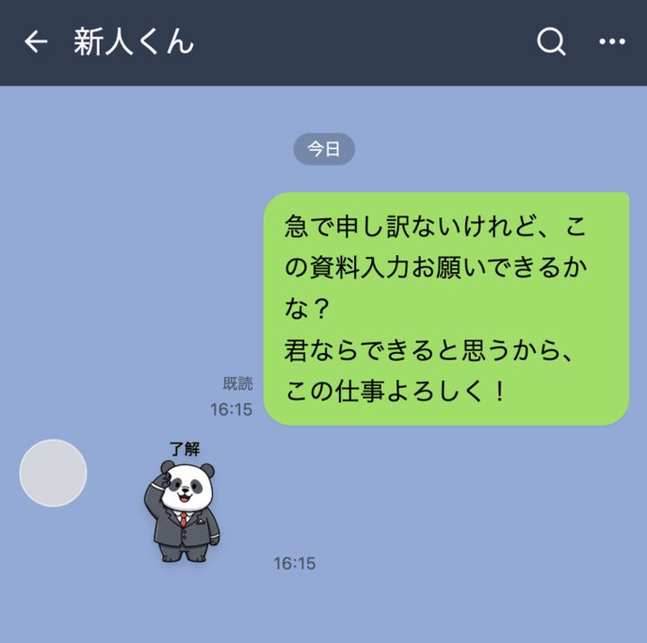 「この仕事よろしく」と新人に出した指示→「ピロン!」新人から返ってきたのはパンダのスタンプ【短編小説】