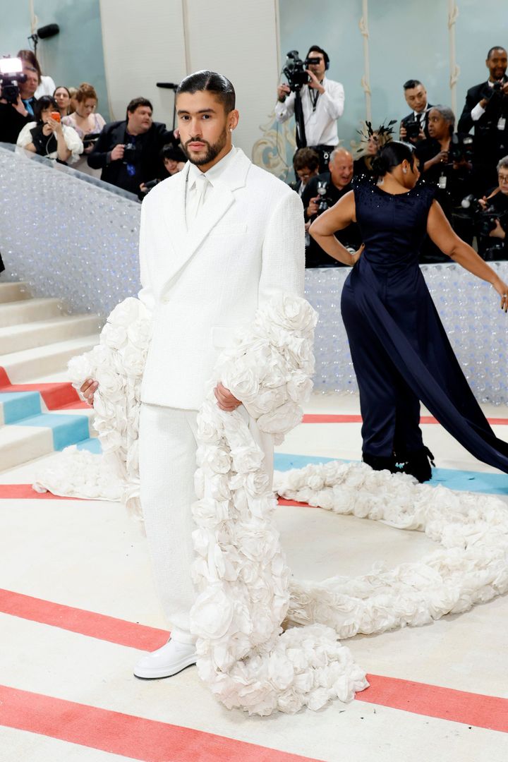 この年のメットガラは、ジャックムスの純白のスーツをまとい清々しくキリリとお出まし。およそ8メートルもあるフローラルのケープで大きなインパクトを与えることも忘れずに。