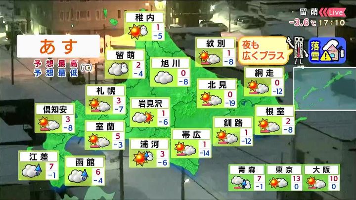 背景は9日午後5時ごろの留萌情報カメラ