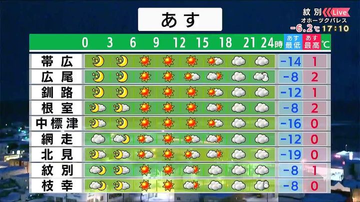 背景は9日午後5時ごろの紋別情報カメラ