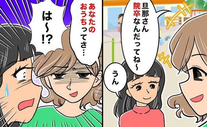 そして、どこかのママに聞いたのか、夫が院卒の会社員ということを知っていた保育園ママ。