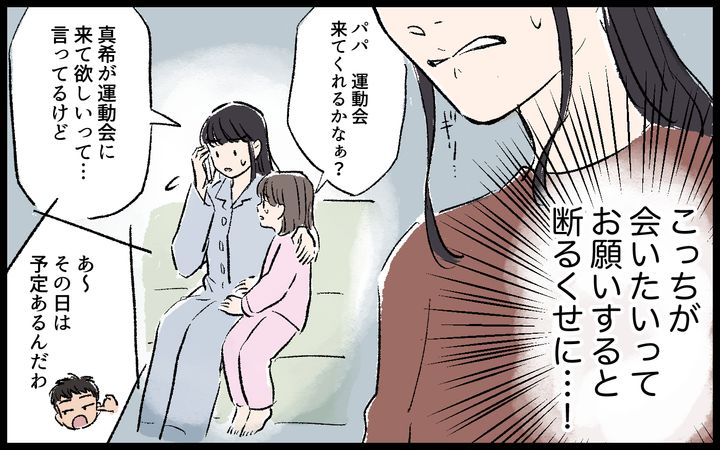 邪魔しかしない夫ですね。奥さんを悪者にして娘を引き取りたいのか…