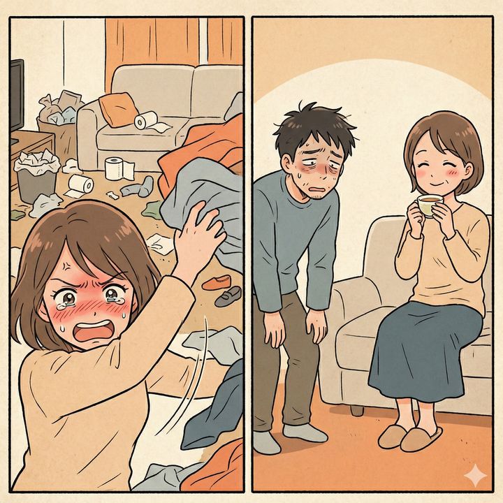 そんな日常のモヤモヤが頂点に達するのは、週末。気まぐれに夫が家事をした瞬間だ。