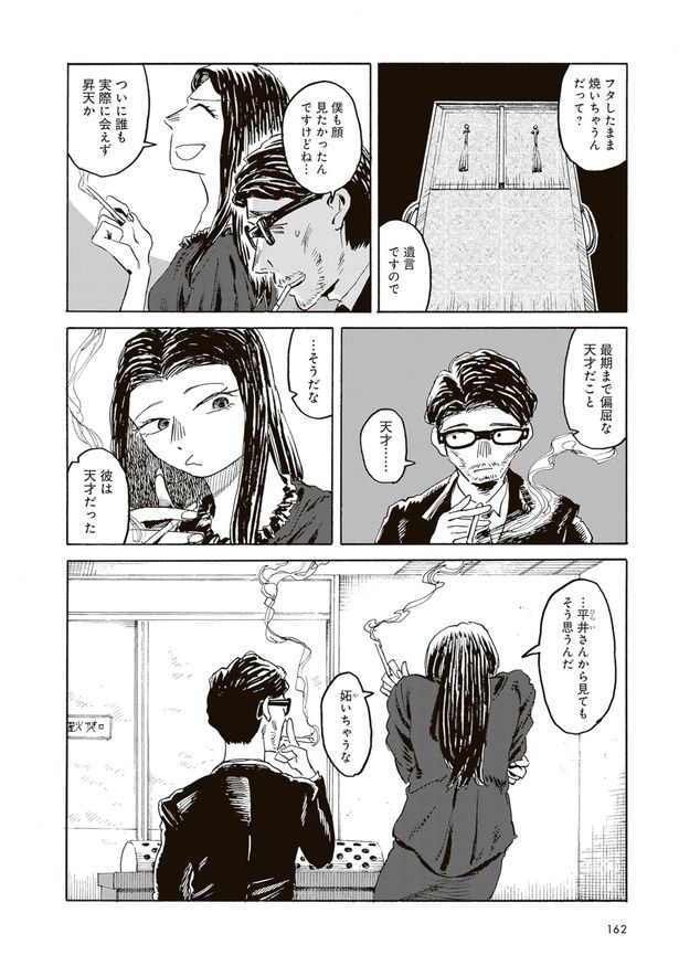 棺の蓋は終始閉じられたまま。最期まで偏屈な天才小説家の葬式/1ページ先、奇妙を右方向です。③