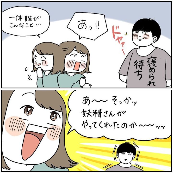 【家事を助けてくれる便利な妖精】褒められたがりな「アイツ」の正体とは!?【momoの漫画】