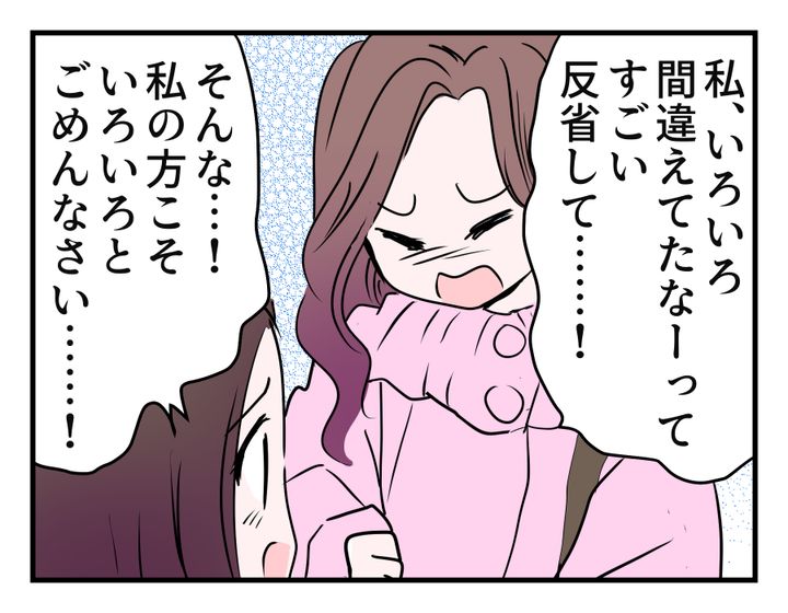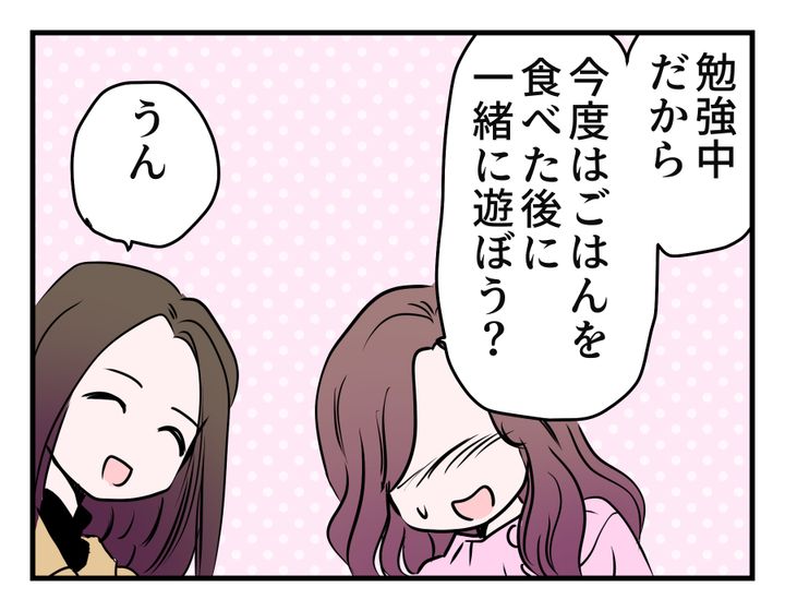こうしてシオンさんとミチルさんは、再び仲良くなったのでした。その後、休日に公園遊びをするときは、昼食後の13時集合にしているのだそう。ですが、またいつか一緒にお昼をともにできたらいいなと、ミチルさんもシオンさんも、口には出さないものの思っているようです。ちなみにシオンさんとルナちゃんは、好きなものもほどほどに取り入れつつ、無理のない健康的な食生活を続けているようです。最近はスポーツ系の習いごともはじめたそうで、健康面はもちろん、体型も自然と引き締まってきたのだとか。いろいろありましたが、いい結末にたどりつけてよかったですね!!