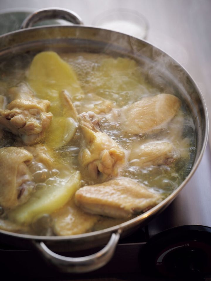 韓国の定番鍋〈タッカンマリ〉を、おうちで手軽に。使う調味料は家にあるものだけだから、思い立ったときに気負わず作れます。