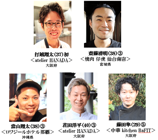 次のステージへ勝ち進んだのは、「日本料理」「フレンチ・イタリアン・スパニッシュ(※1)」「中国・アジア料理(※2)」「フードクリエイター・ジャンルレスその他(※3)(※4)」の4つの料理ジャンルからそれぞれ選ばれた上位5名です。