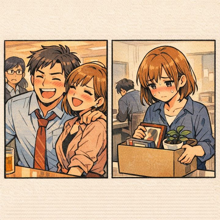 淀んだ空気が一掃され、活気を取り戻したオフィス。 不倫は百害あって一利なし。