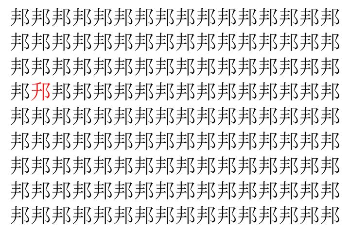 【脳トレ】「邦」の中に紛れて1つ違う文字がある!?あなたは何秒で探し出せるかな??【違う文字を探せ!】