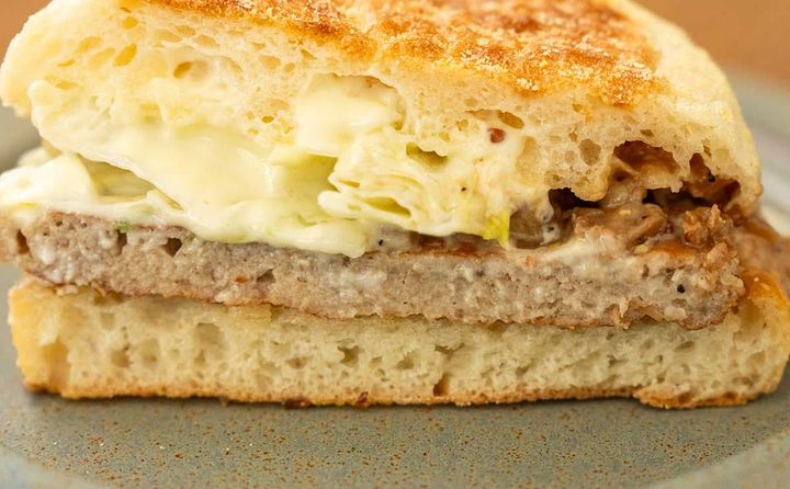 この商品は、風味豊かなソーセージパティに、ビーフフィリングとスイートレモンソースを合わせ、レタスと一緒に焼き立てのイングリッシュマフィンでサンドしたもの。