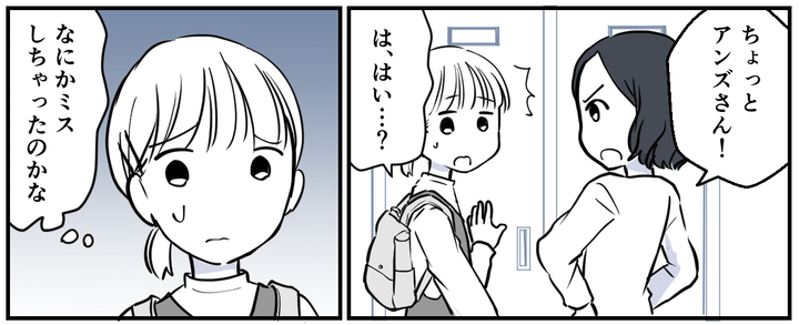 私はアンズ(25)。1年前にテツジ(29)と結婚をして、現在妊娠4か月目です。職場に妊娠のことを打ち明けるのは安定期に入ってからにしようと思ったのですが、現在つわりがひどくご飯が食べられないので、力仕事がきつくなってしまいました。だから、そのことを女性の上司・キヨカ(55)さんに相談すると、快く事務作業にまわしてくれたのです。辞めなければならないかもと悩んでいたから、とてもありがたかったです。けれども……。