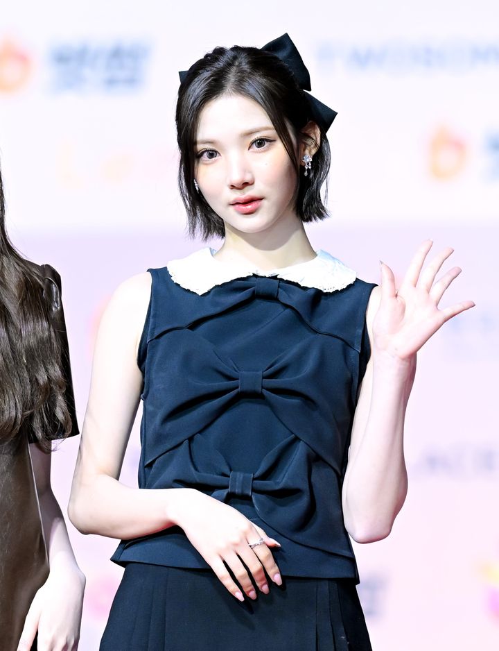 甘くなりがちなリボンモチーフも、ナヨンのように深みのあるダークトーンの髪色と合わせることで、クラシカルな気品をまとうことができる。