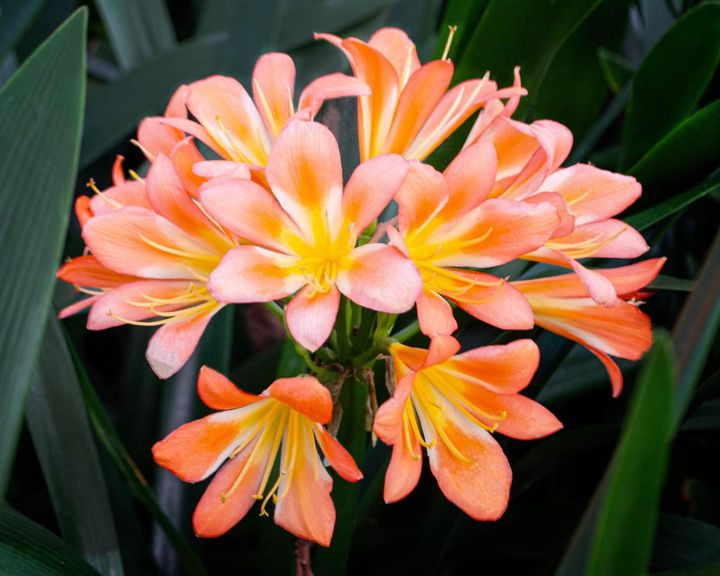 クンシランは南アフリカ原生で、日本に渡来したのは明治初期だといわれています。現在栽培されているクンシランは、クリビア・ミニアータ(Clivia miniata)という原種から改良されたもので、森林の半日陰でそばに小川が流れているような土地に自生しています。そのため、強光線・滞水・強い寒さには弱いのですが、暑さ・日陰には耐えます。無霜地帯では露地植えが可能です。