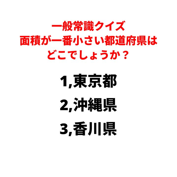 3. 【一般常識クイズ3選】「知っていて当たり前?」面積が一番小さい都道府県はどこでしょうか?