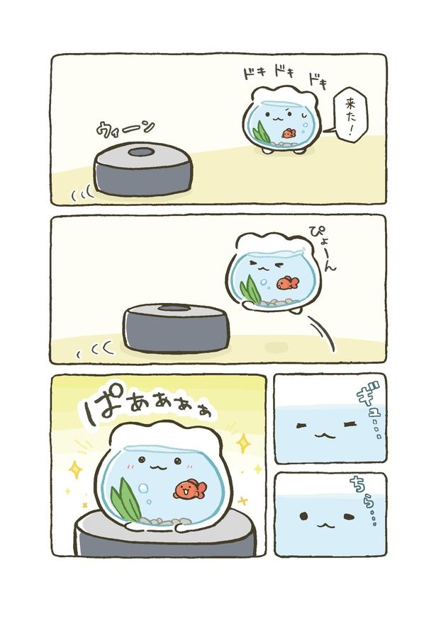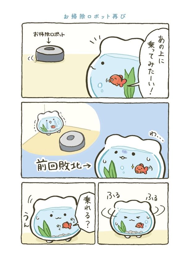 お掃除ロボットが気になる! 相棒のために思い切って飛び乗ってみたものの…/金魚鉢ちゃん⑤