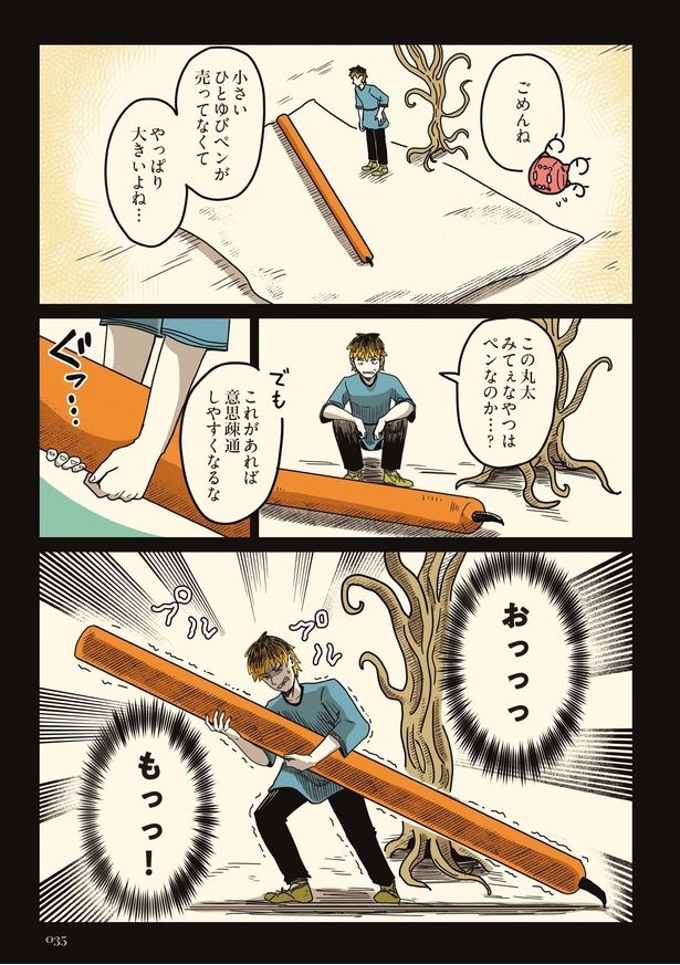 3. 魔獣がプレゼントしてくれた“小さいペン”。名前を伝えようとするが、ニンゲンは四苦八苦/誉!ニンゲンの飼い方⑤