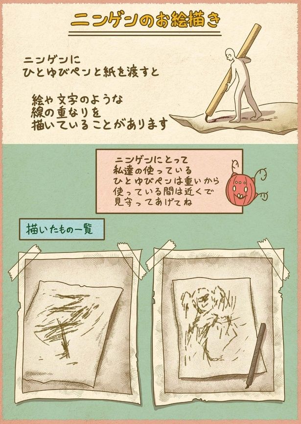 魔獣がプレゼントしてくれた“小さいペン”。名前を伝えようとするが、ニンゲンは四苦八苦/誉!ニンゲンの飼い方⑤
